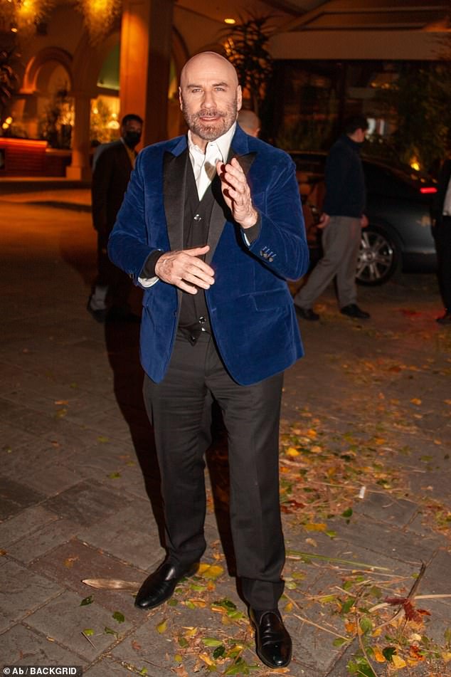 in Movies, Music, TV John Travolta cuts a dapper figure in a velvet blazer as he steps out for dinner in Beverly Hills