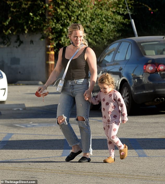 in Music, TV Hilary Duff rocks a tank top and jeans while visiting a book store with daughter Banks in LA