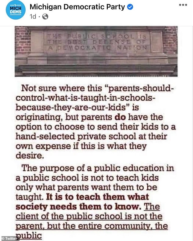 in UK News Michigan Dems are condemned over Facebook posts saying parents are NOT ‘clients of public schools’