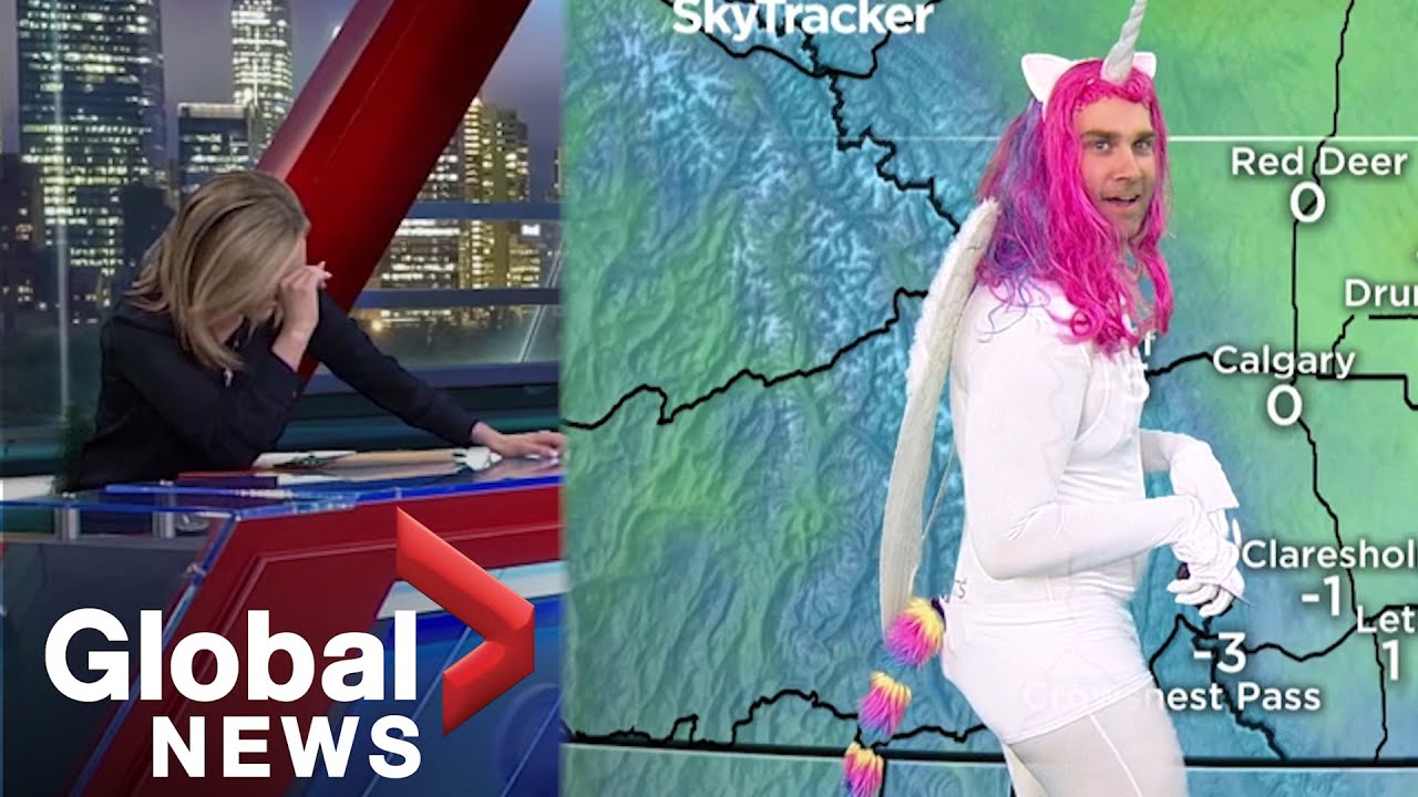in Videos Halloween 2019: News anchors in tears as meteorologist shows up in mystical unicorn costume