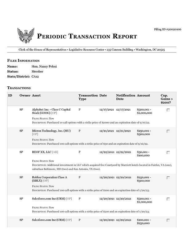 Pelosi’s periodic transaction report reveals her family is making millions of dollars while she’s in Congress