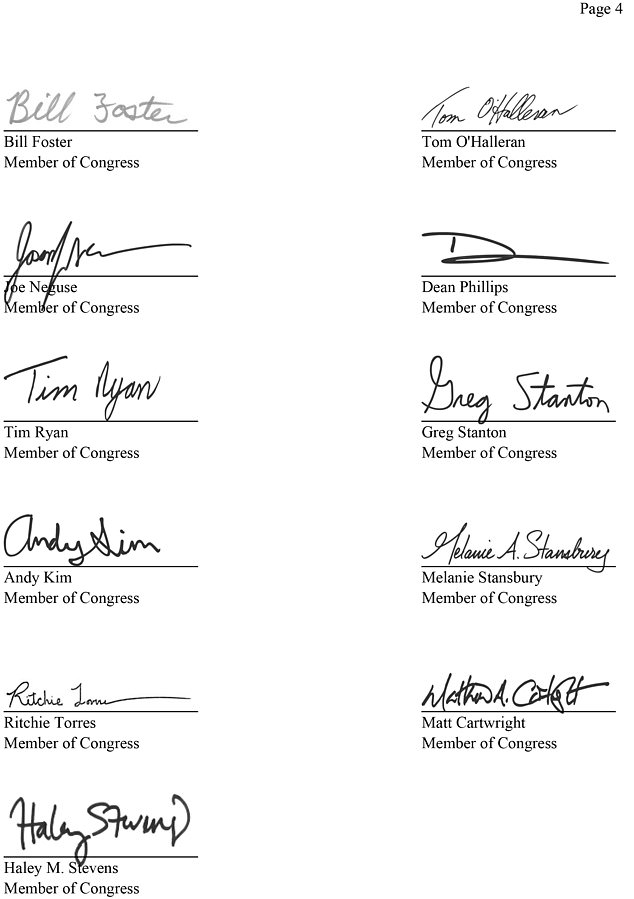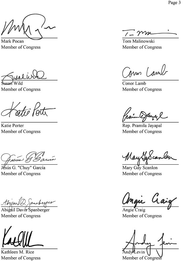 The letter was drafted by Democratic Representative Jared Golden from Maine.
