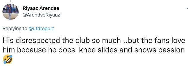 One Twitter account posted: ‘He’s disrespected the club so much… but the fans love him because he does knee slides and shows passion.’