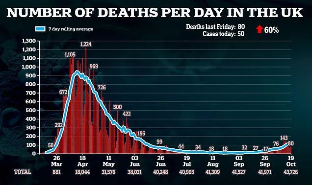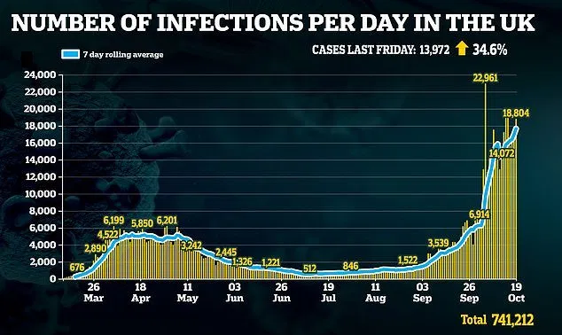 Data showed England had a coronavirus infection rate of 166 per 100,000 people in the week of October 14 while Wales had a rate of 163 per 100,000. The Government today announced another 18,804 lab-confirmed cases in the UK and an additional 80 deaths.