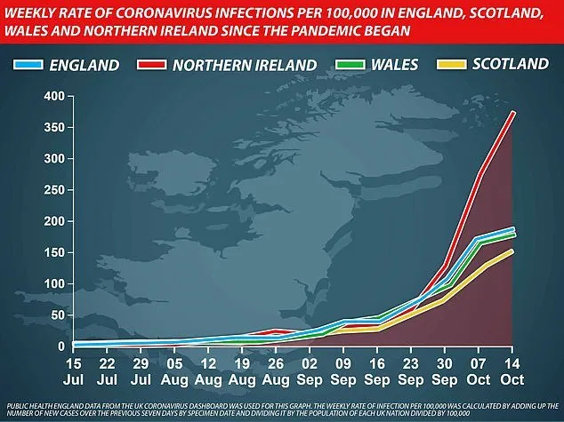 Northern Ireland and Scotland have already introduced their own national crackdowns amid spiking cases, but the PM has been sticking to his plan for local ‘Tiers’ of restrictions.